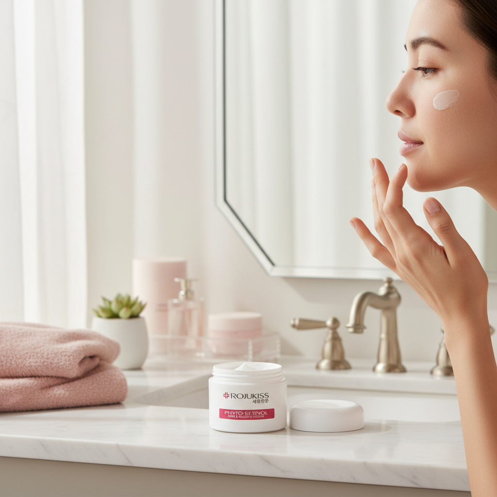Rojukiss Phyto Retinol Firm & Smooth Cream 50ml: A concentrated cream formulated with the power of nature to address early wrinkles, reduce dark spots, and smooth skin for a radiant, plump complexion. This gentle yet effective wrinkle-fighting formula combines the power of nature.